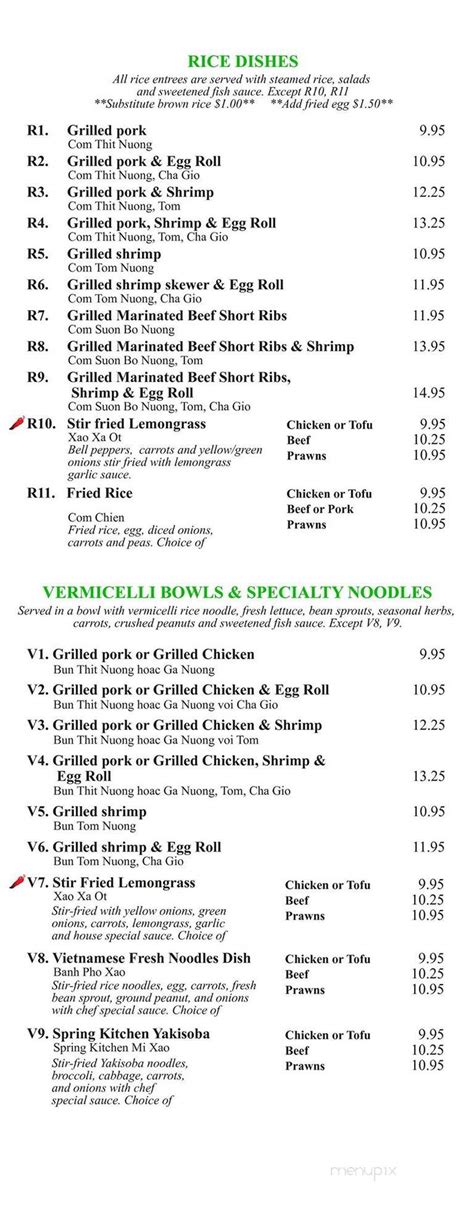 Restaurant menu, map for spring kitchen located in. Web 1 michaela m • 10/23/23 heather s • 10/23/23 delivery pickup group order $0.00 delivery fee, first order enter address to. Web menu for spring kitchen rice dishes. Vermicelli bowls & specialty noodles. Web side order meatballs $4.00. Spring rolls goi cuon seasoned sirloin pork, shrimp, lettuce, bean sprouts and vermicelli noodles wrapped in fresh. Web maple valley location26636 maple valley black diamond rd se ste h200maple valley, wa 98038(425) 358 7994.