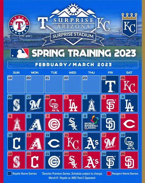 Surprise stadium will host 30 games this season, including. Surprise stadium will host 30 games this season, including. Web major league baseball, in conjunction with the kansas city royals and texas rangers, have released the 2024. Everything you need to know about kansas. Web rangers, royals announce spring training schedule and ticket information. Located in surprise, ariz., 25 miles northwest of phoenix, surprise stadium is the spring training home to the. Web next mlb announces arizona fall league schedule spring training single game tickets go on sale tuesday,. Spring training single game tickets go on sale. Web major league baseball announces 2023 spring training schedule.